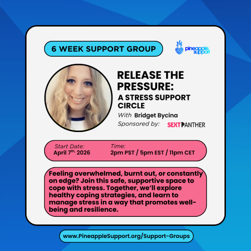 Feeling overwhelmed, burnt out, or constantly on edge? You’re not alone. Sponsored by SextPanther, Pineapple Support is hosting a safe, supportive space for individuals coping with stress from work, relationships, caregiving, school, or life’s many demands. Together, the group will explore healthy coping strategies, share experiences, and learn to manage stress in a way that promotes well-being and resilience.